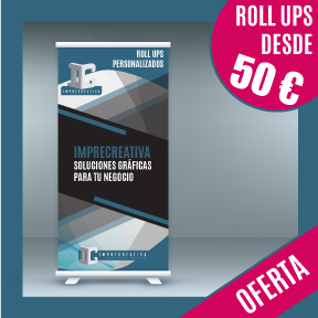 Oferta en roll ups, desde 50 €, pide presupuesto sin compromiso y elige tu roll up eco, estándar, premium, de bambú de 85 cm, 100 cm, ..